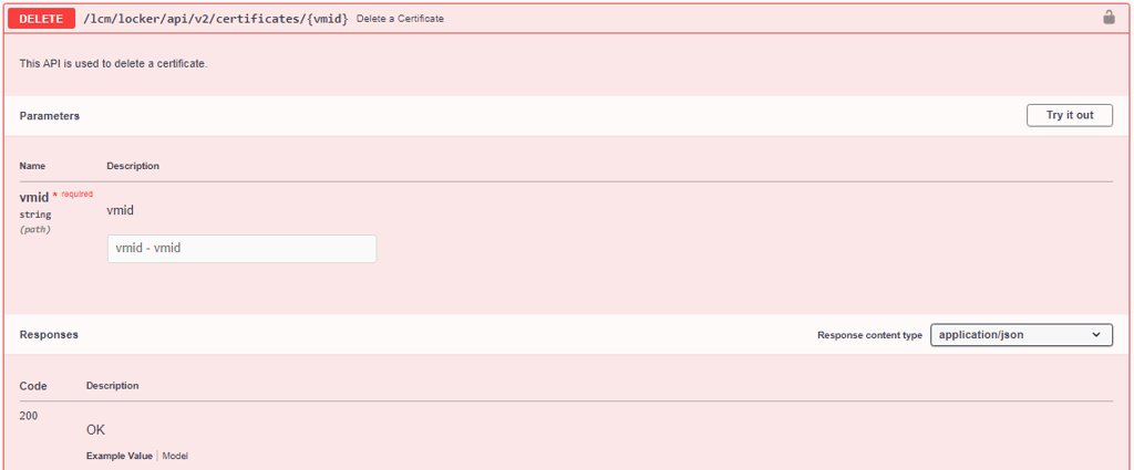 irm -method DELETE -headers $fleetheader -uri "<fleet manager fqdn>/lcm/locker/api/certificates/<vmid>"