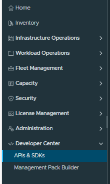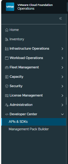 First, we need to identify the API endpoint used to list certificates. Log in to VCF Ops and navigate to the Developer Center. From there, open the Fleet Manager APIs and select Internal in the top corner.