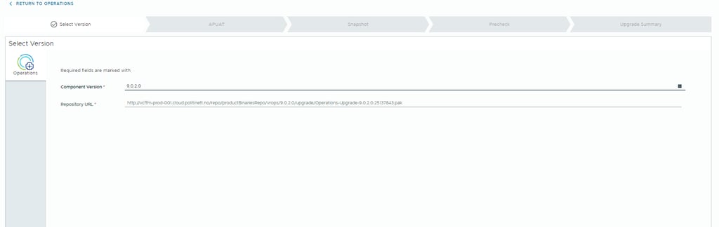 From here, you can start the patching process, beginning with VCF Operations.