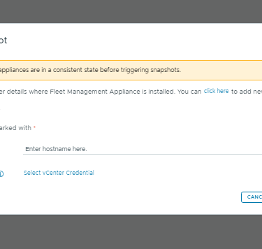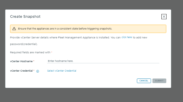 Provide the vCenter credentials, and the snapshot will be taken automatically.