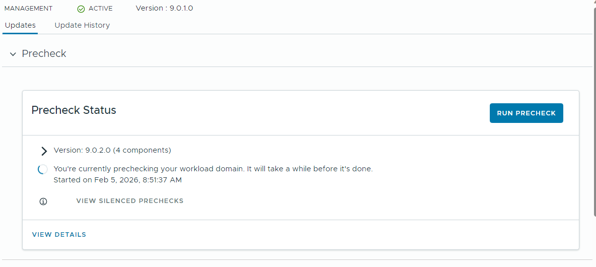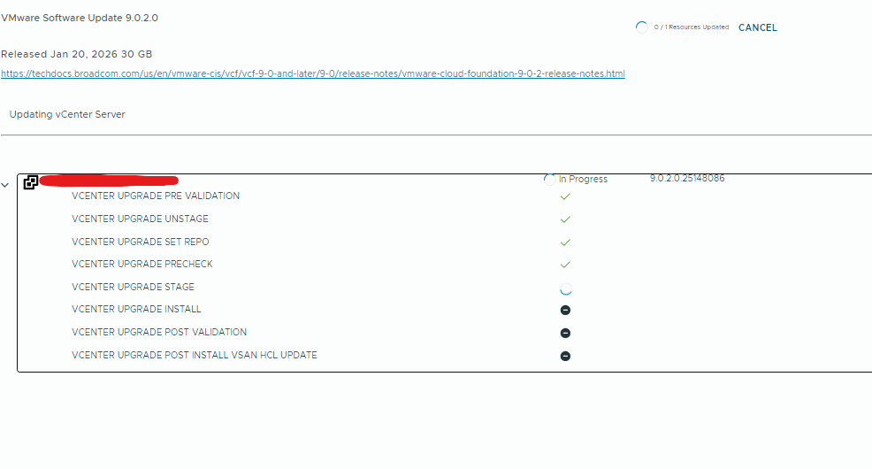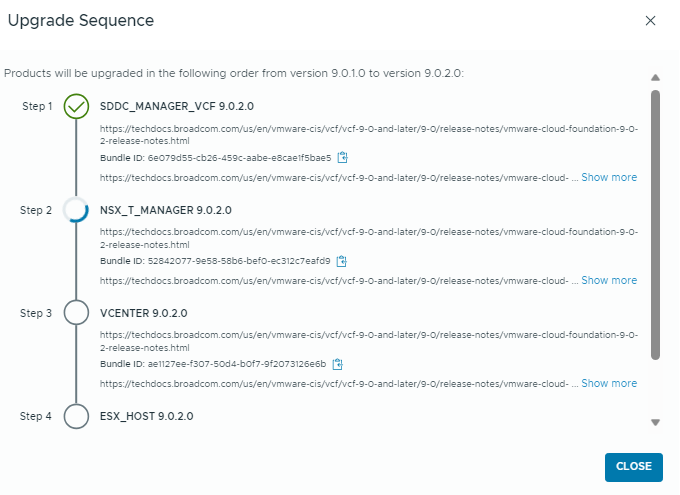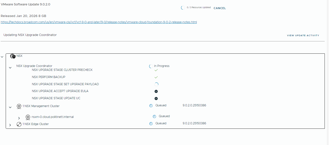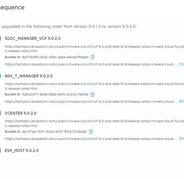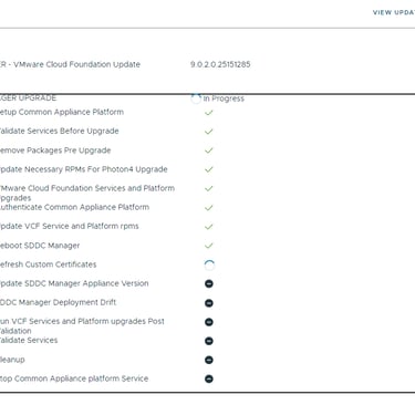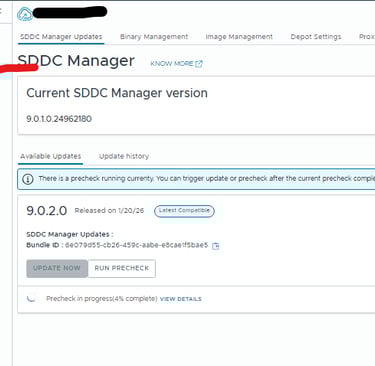 Upgrading from VCF 9.0.1 to 9.0.2 was a smooth and well-structured lifecycle process, with most of the work handled directly through SDDC Manager and Fleet Management. The workflow is very guided, starting with binary downloads, followed by prechecks, and then upgrading each core component in the correct order (SDDC Manager, NSX, vCenter, ESXi, and finally vSAN disk format).