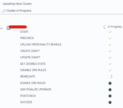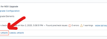 Once the precheck completes without any errors, you’re ready to begin patching the first core component, NSX.