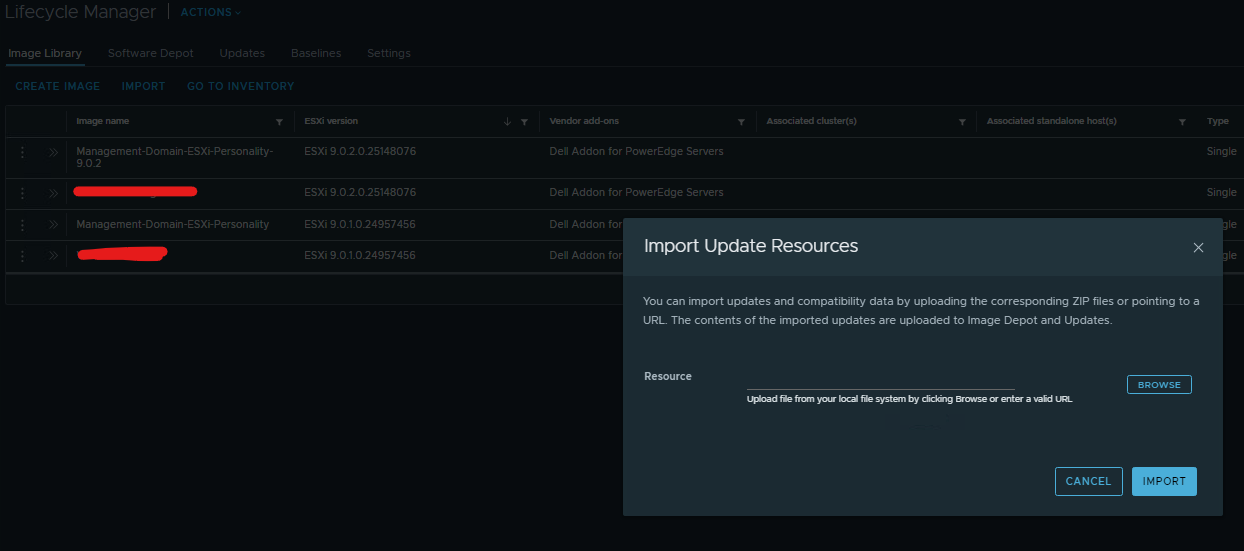 After the image was successfully imported, I navigated back to the Management Domain to continue with the ESXi host upgrade.