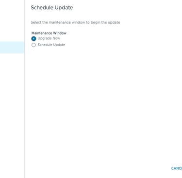 Since I selected the standard update method, my available options were limited to either starting the upgrade immediately or scheduling it for a later time.
