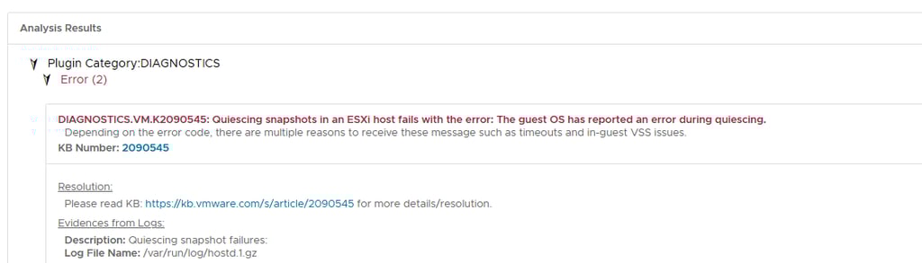 I fancy this tool a lot and its very easy to set up. Simply download the OVA files from the official VMware website, complete the necessary configurations, and you're ready to use the Skyline Diagnostic Tool. With this tool, you can upload logs from an ESXi host to identify issues, enabling faster troubleshooting and proactive problem detection. Below are some screenshots of me using the tool to analyze a set of logs: