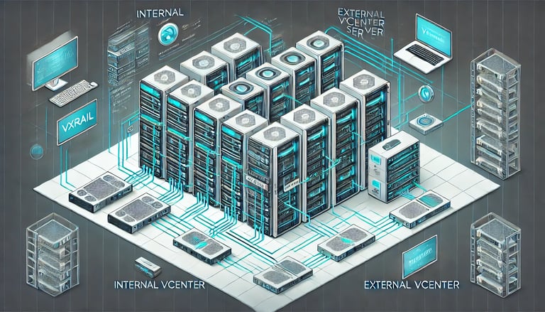 External vCenter: In this setup, the customer already has their own vCenter deployed, and the VxRail cluster is configured to reference this external vCenter. The external vCenter is not managed by VxRail and remains the customer's responsibility.